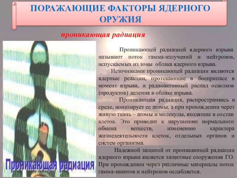 Проникающей радиацией ядерного взрыва называют поток гамма-излучений и нейтронов, испускаемых из зоны облака ядерного взрыва.