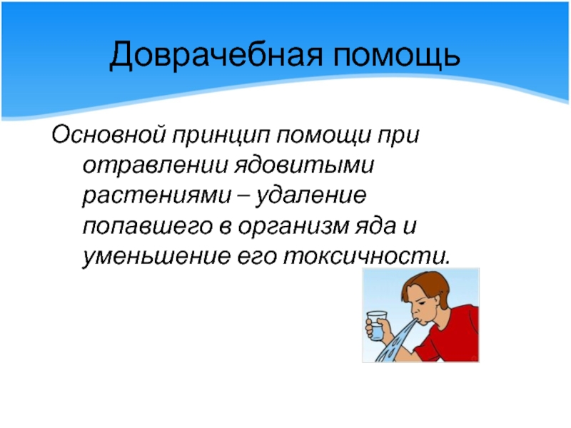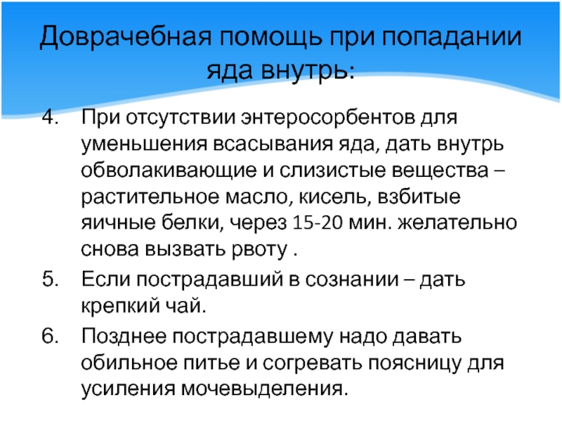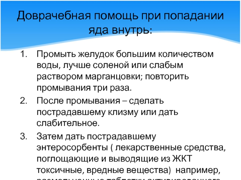 Слайд 31Доврачебная помощь при попадании яда внутрь: