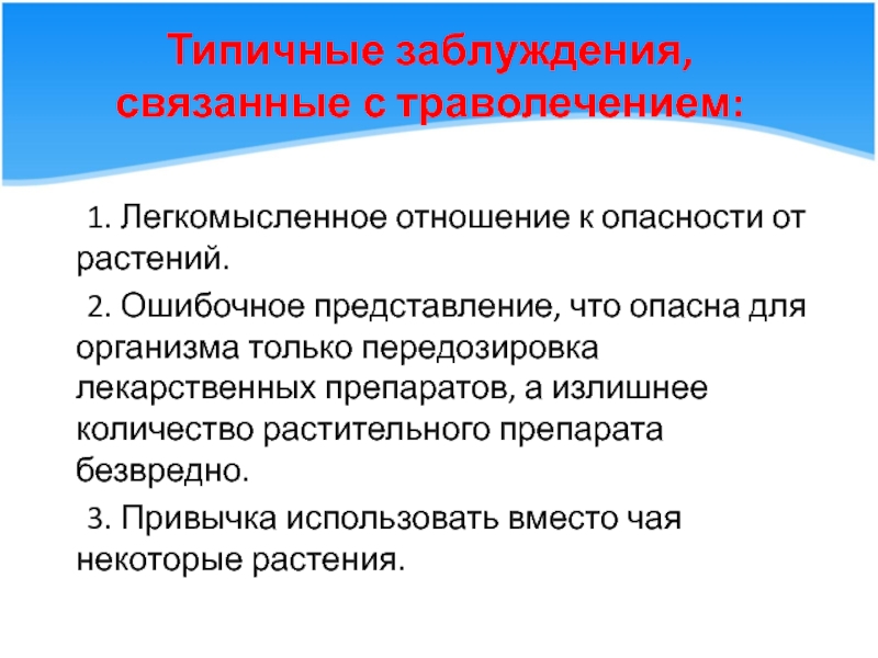 Слайд 5Типичные заблуждения, связанные с траволечением: