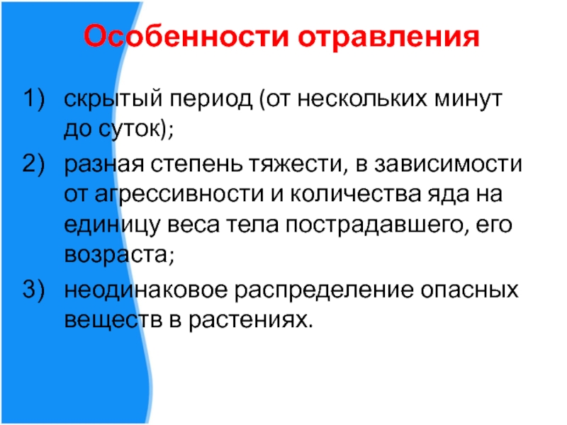 гликозиды, органические кислоты и т.д.), которые при попадании в организм человека вызывают нарушения жизненно важных функций органов, систем и создают угрозу для жизни.