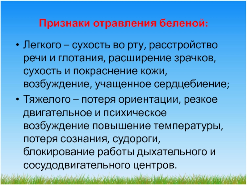 - ЦНС (белена черная, дурман обыкновенный, красавка (белладонна), болиголов, вех ядовитый);