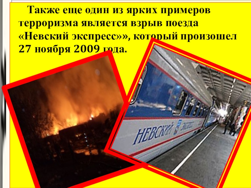 является взрыв поезда «Невский экспресс»», который произошел 27 ноября 2009 года.