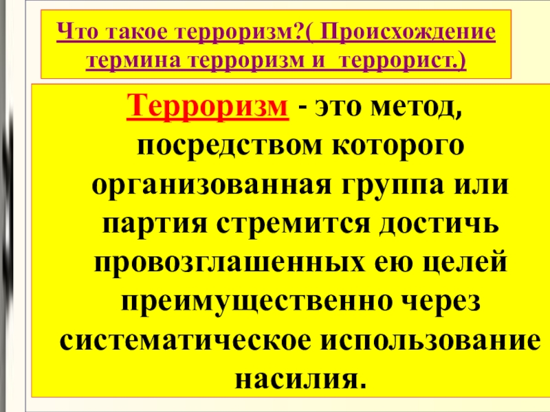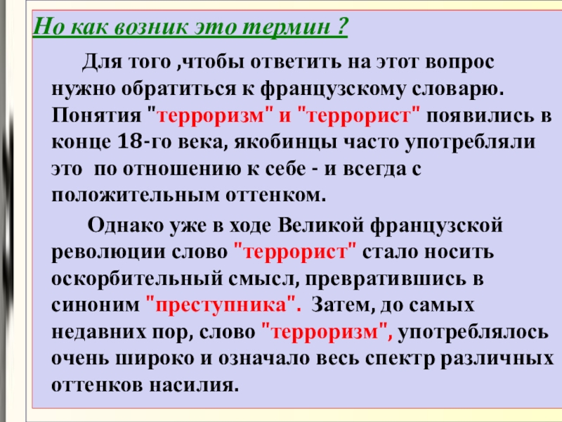 Слайд 5Что такое терроризм?( Происхождение термина терроризм и террорист.)