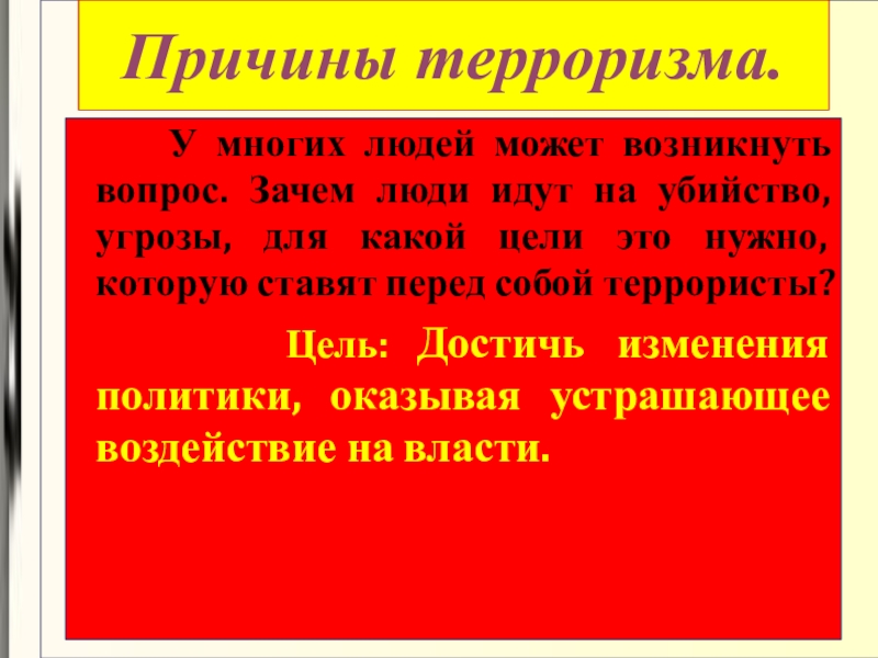 люди идут на убийство, угрозы, для какой цели это нужно, которую ставят перед собой террористы?