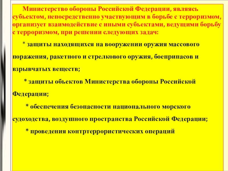 2.3 Какие задачи ставят перед собой Министерство обороны по противодействию терроризму.