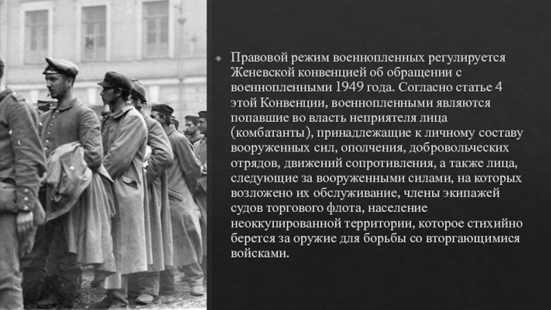 Слайд 5Правовой режим военнопленных регулируется Женевской конвенцией об обращении с военнопленными 1949