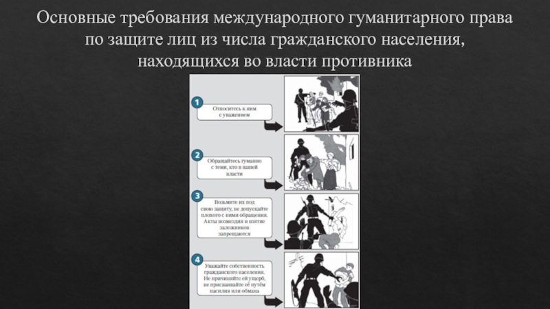 Слайд 16Основные требования международного гуманитарного права по защите лиц из числа гражданского
