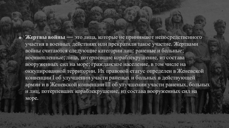 Слайд 3Жертвы войны — это лица, которые не принимают непосредственного участия в