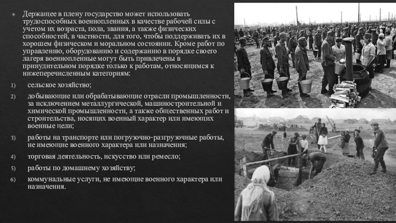 Слайд 7Держащее в плену государство может использовать трудоспособных военнопленных в качестве рабочей