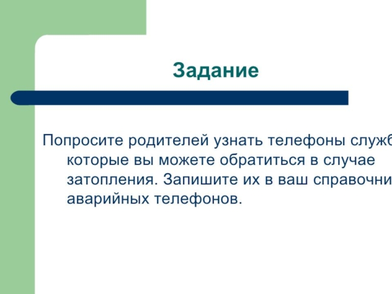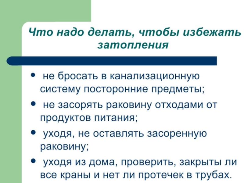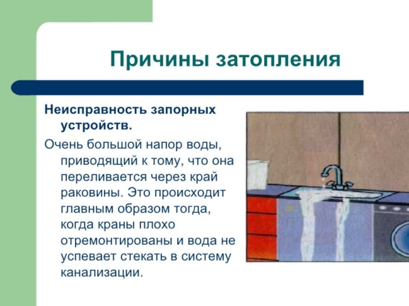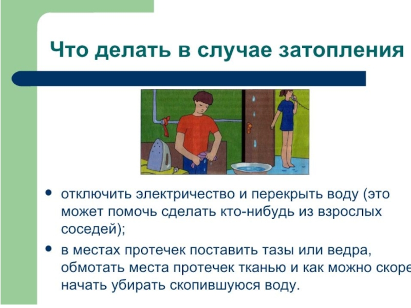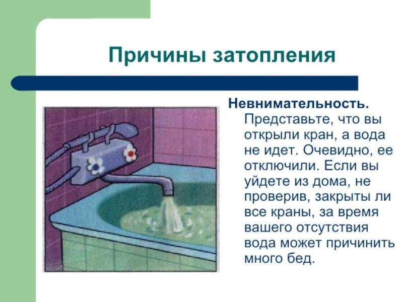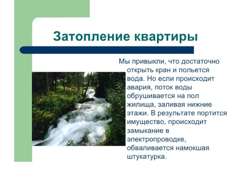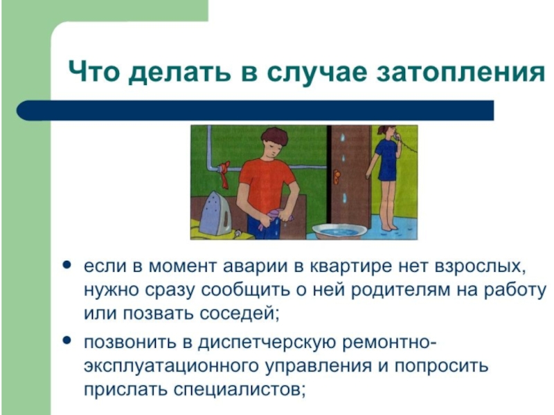 Презентация, доклад по ОБЖ на тему Затопление квартиры (5 класс)