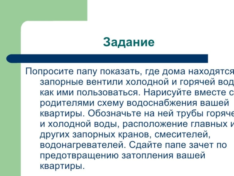 Презентация по ОБЖ на тему Затопление квартиры (5 класс) ОБЖ