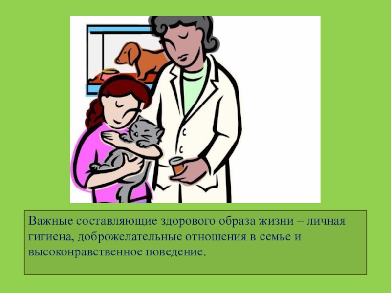 Слайд 13Важные составляющие здорового образа жизни – личная гигиена, доброжелательные отношения в
