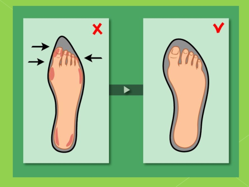 Слайд 16Обувь должна быть удобной в носке, соответствовать размерам и особенностям стопы,