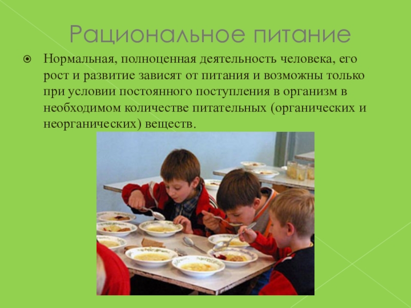 Нормальная, полноценная деятельность человека, его рост и развитие зависят от