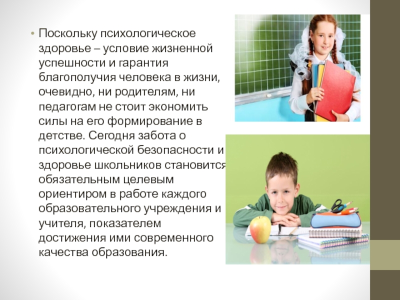 Слайд 3Поскольку психологическое здоровье – условие жизненной успешности и гарантия благополучия человека