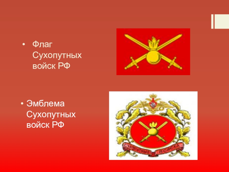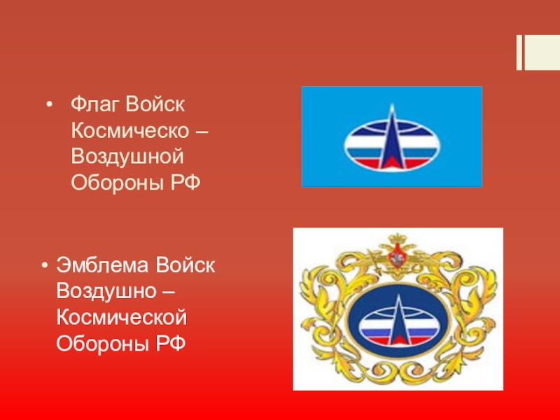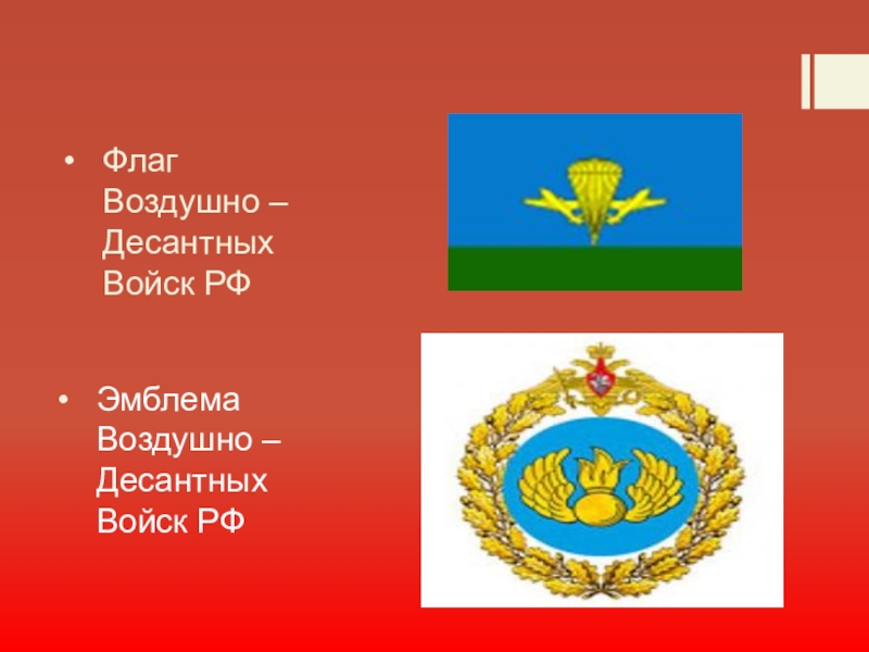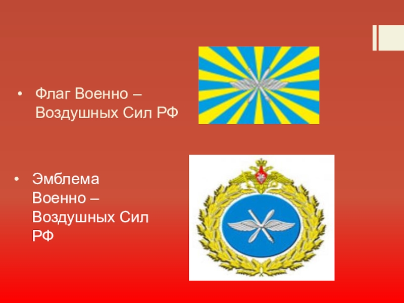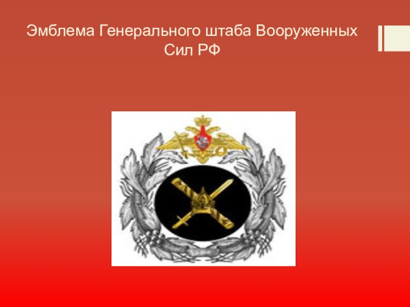 На оборотной стороне полотнища, в центре, - военный геральдический знак - эмблема Вооруженных сил Российской Федерации: золотой двуглавый орел с распростертыми крыльями.