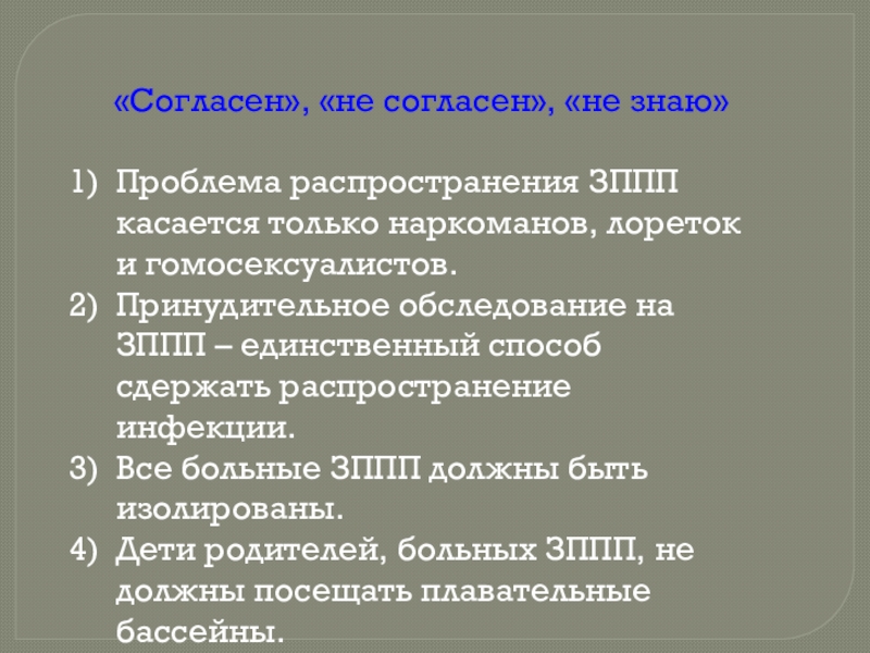 Слайд 17«Согласен», «не согласен», «не знаю»