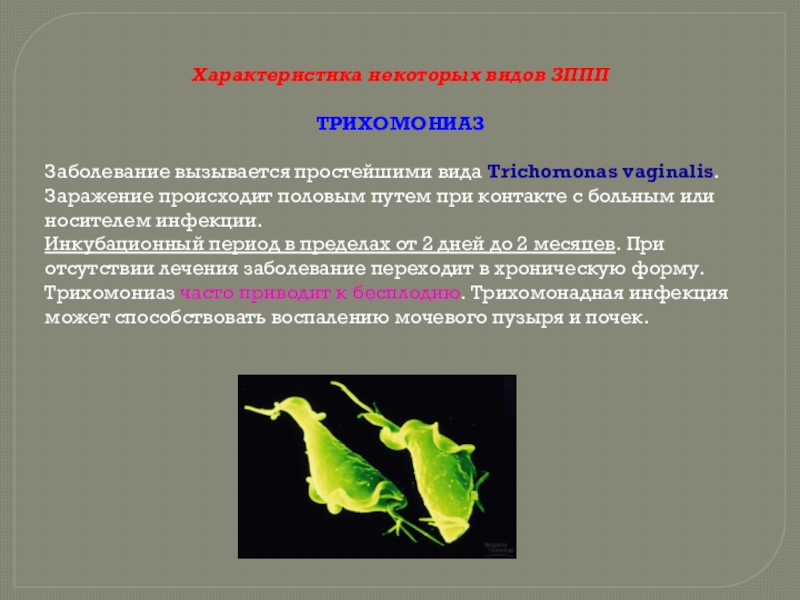 Трихомониаз часто приводит к бесплодию. Трихомонадная инфекция может способствовать воспалению мочевого пузыря и почек.