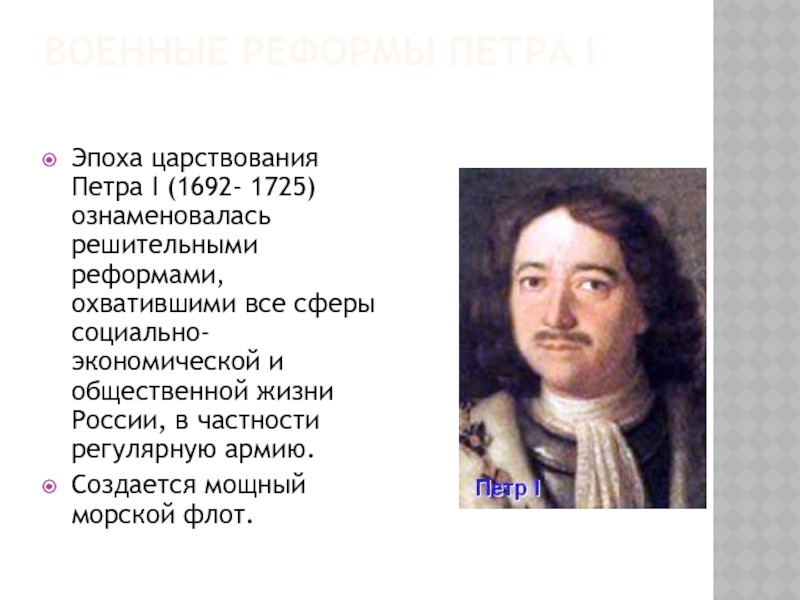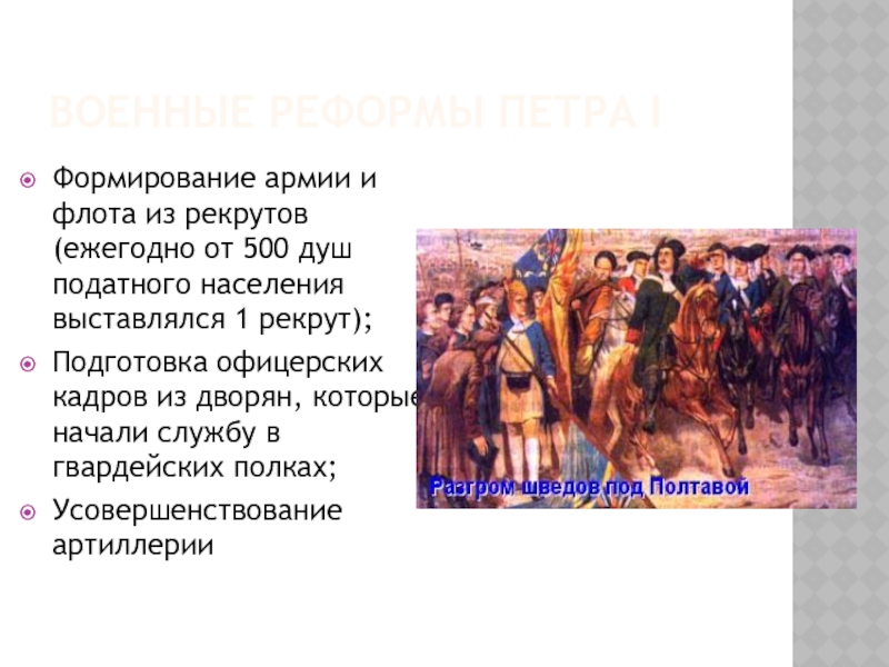 Слайд 13ВОЕННЫЕ РЕФОРМЫ ПЕТРА I