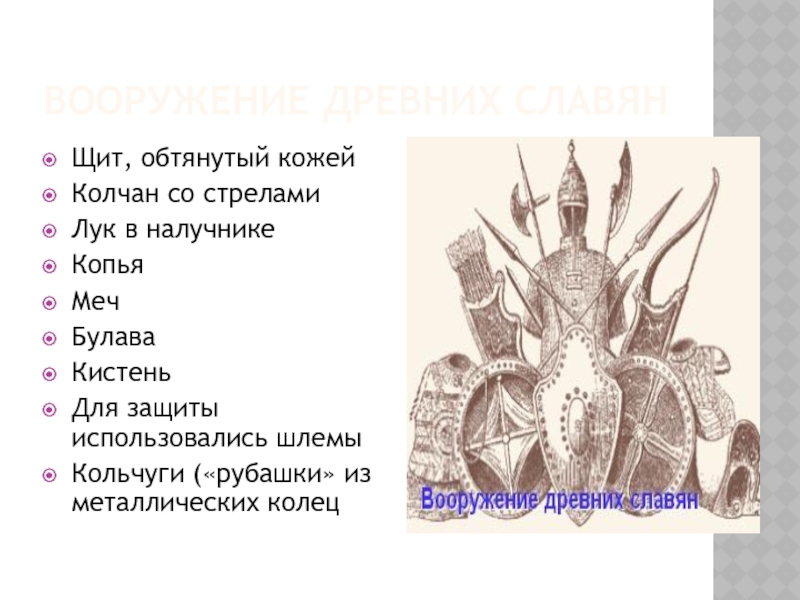 Слайд 6ВООРУЖЕНИЕ СЛАВЯНСКИХ НАРОДОВ