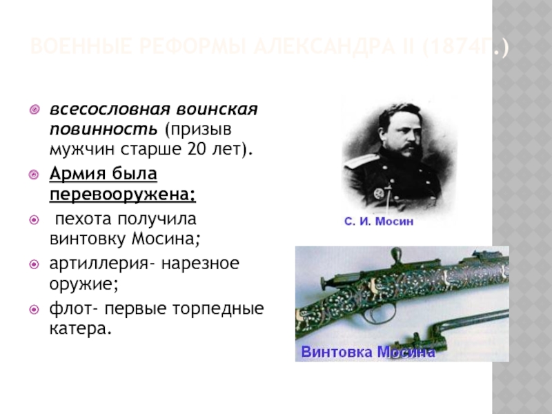 Слайд 15ВОЕННЫЕ РЕФОРМЫ АЛЕКСАНДРА II (1874Г.)