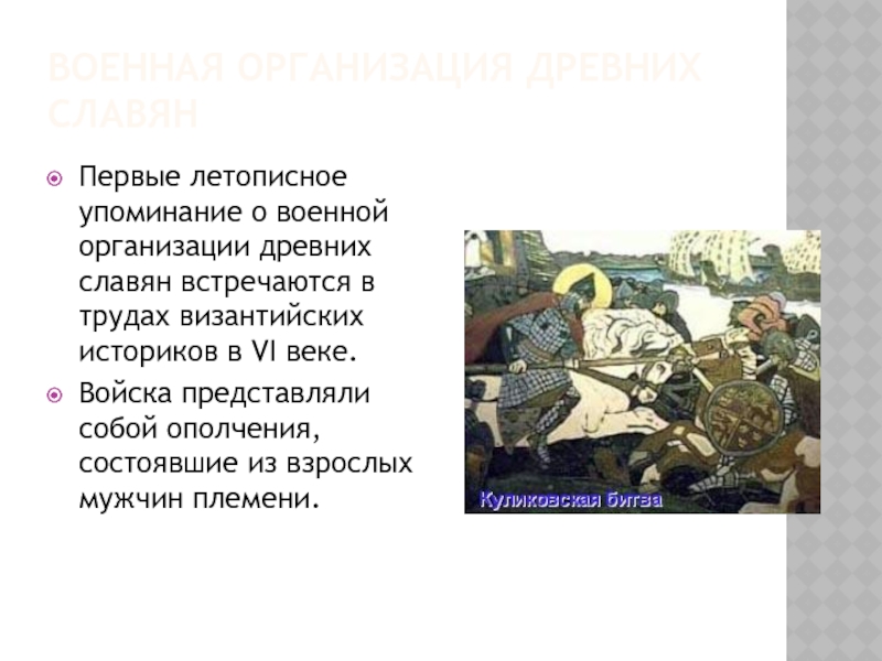 Слайд 4ВОЕННАЯ ОРГАНИЗАЦИЯ ДРЕВНИХ СЛАВЯН