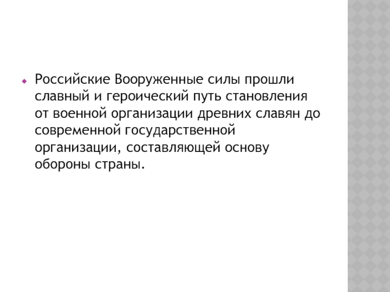 Слайд 25Российские Вооруженные силы прошли славный и героический путь становления от военной