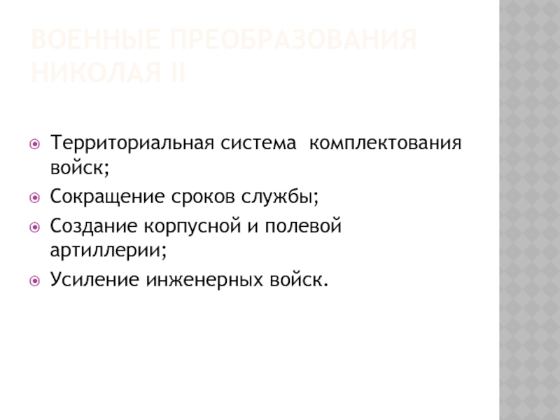 Слайд 16ВОЕННЫЕ ПРЕОБРАЗОВАНИЯ НИКОЛАЯ II