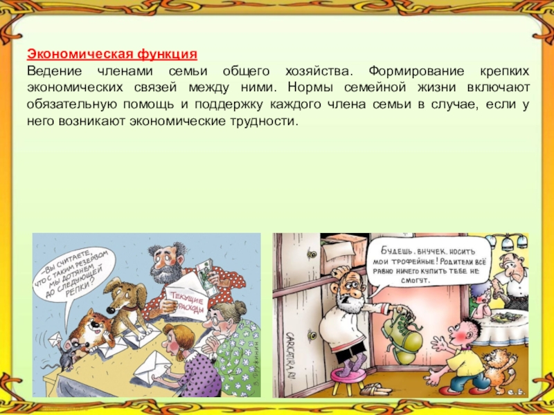 ними. Нормы семейной жизни включают обязательную помощь и поддержку каждого члена семьи в случае, если у него возникают экономические трудности.