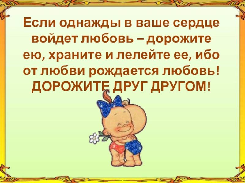 Слайд 36Если однажды в ваше сердце войдет любовь – дорожите ею, храните