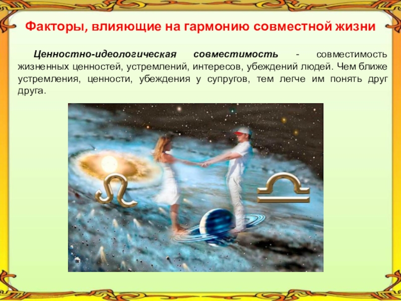 Слайд 5Факторы, влияющие на гармонию совместной жизни