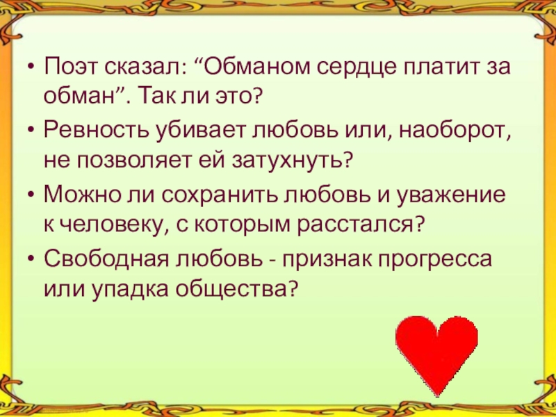 Слайд 35Поэт сказал: “Обманом сердце платит за обман”. Так ли это?
