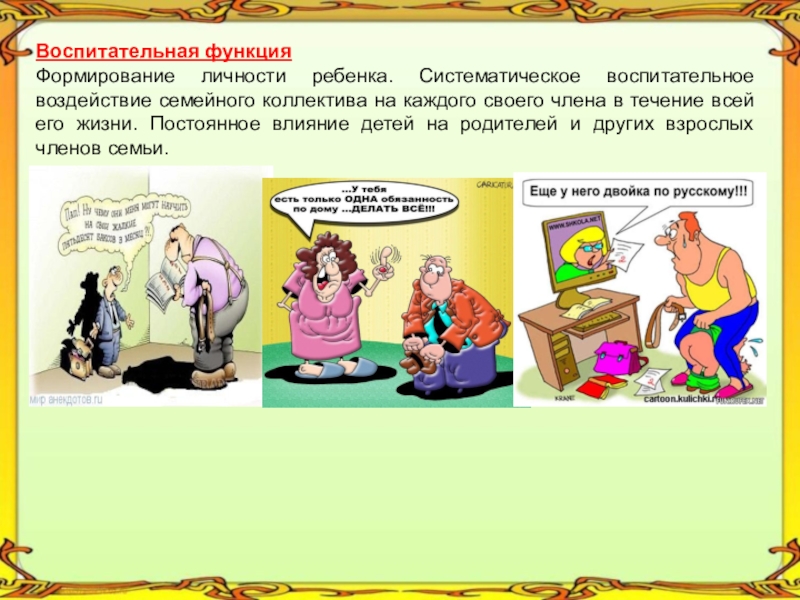своего члена в течение всей его жизни. Постоянное влияние детей на родителей и других взрослых членов семьи.