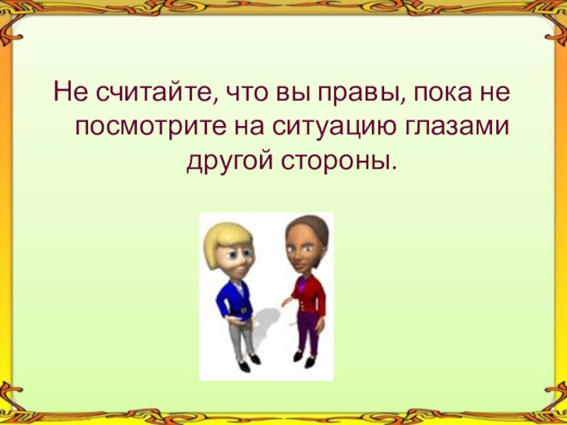 Слайд 45Не считайте, что вы правы, пока не посмотрите на ситуацию глазами
