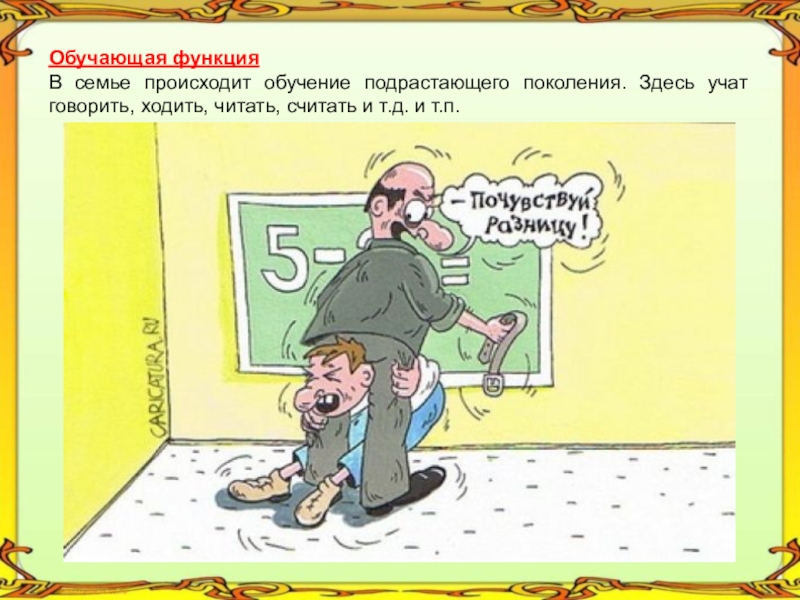В семье происходит обучение подрастающего поколения. Здесь учат говорить, ходить,