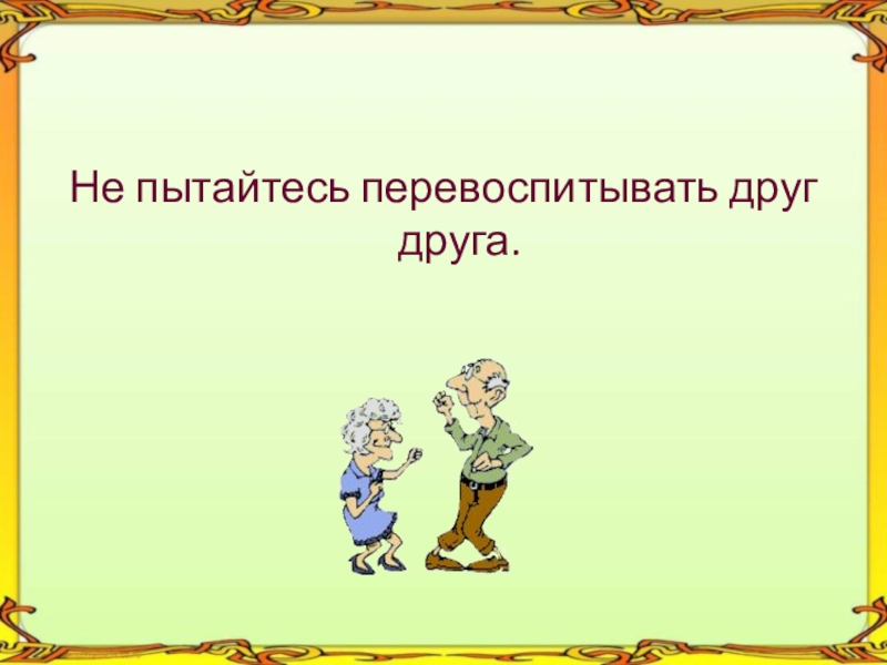 Слайд 41Не пытайтесь перевоспитывать друг друга.