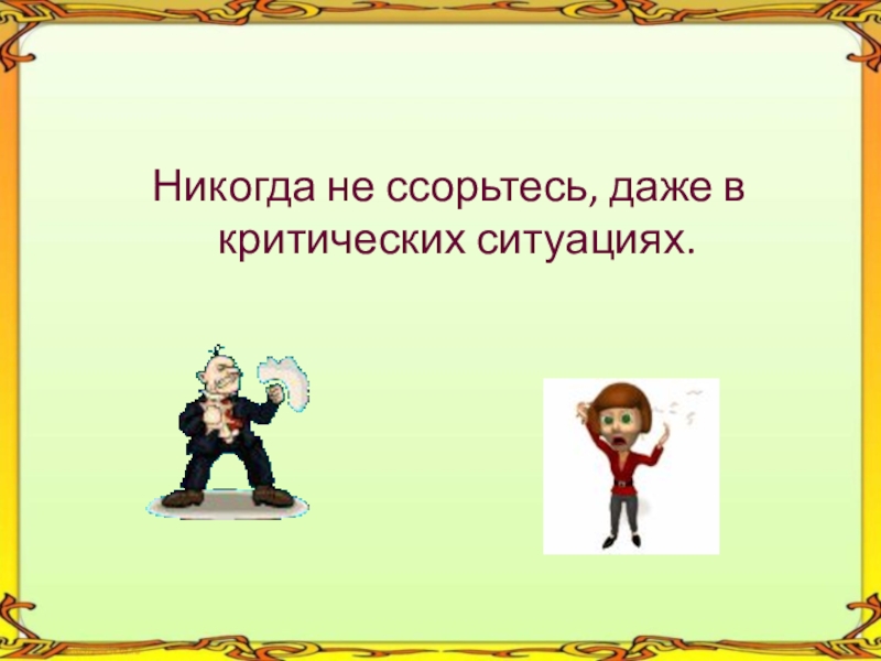 Слайд 39 Никогда не ссорьтесь, даже в критических ситуациях.