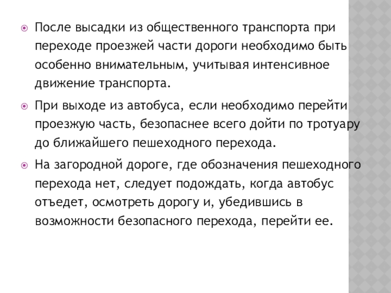 Слайд 7После высадки из общественного транспорта при переходе проезжей части дороги необходимо