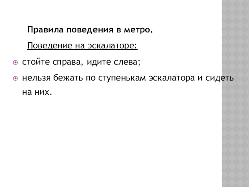 нельзя бежать по ступенькам эскалатора и сидеть на них.