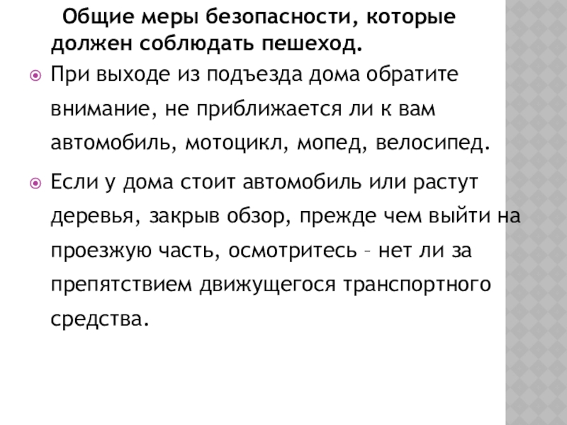 Слайд 4 Общие меры безопасности, которые должен соблюдать пешеход.