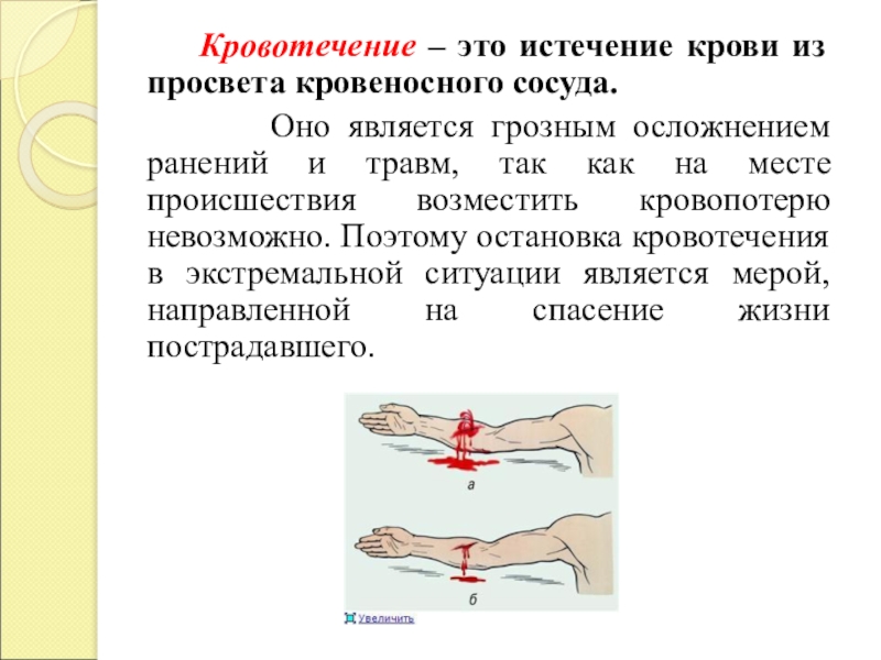 Слайд 2 Кровотечение – это истечение крови из просвета кровеносного сосуда.