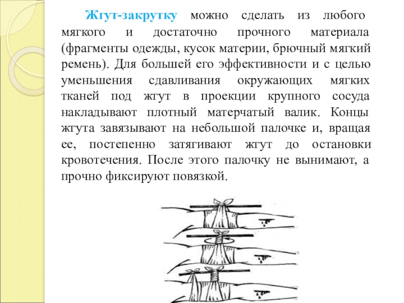 Слайд 20 Жгут-закрутку можно сделать из любого мягкого и достаточно прочного материала (фрагменты