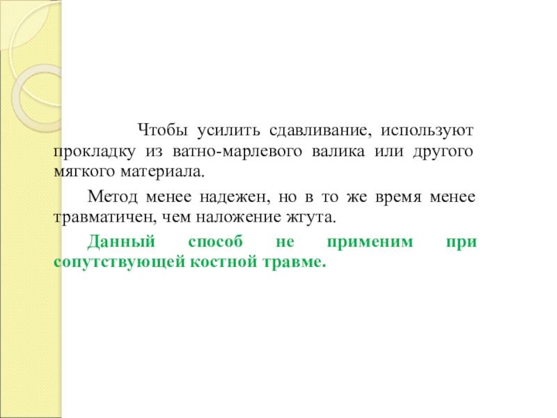 Метод менее надежен, но в то же время менее травматичен, чем наложение жгута.