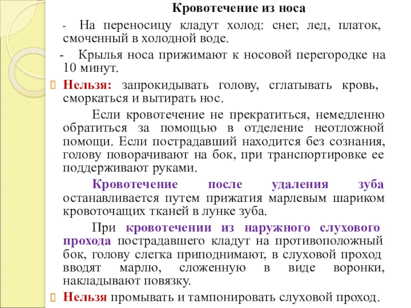 Нельзя: запрокидывать голову, сглатывать кровь, сморкаться и вытирать нос.
