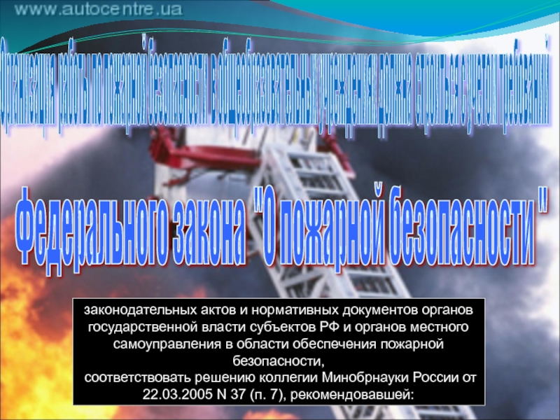 законодательных актов и нормативных документов органов государственной власти субъектов РФ и органов местного самоуправления в области обеспечения пожарной безопасности,