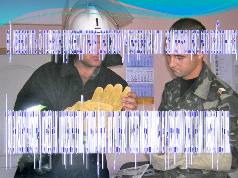г) организовать встречу пожарных подразделений, принять меры по тушению пожара имеющимися в учреждении средствами пожаротушения.