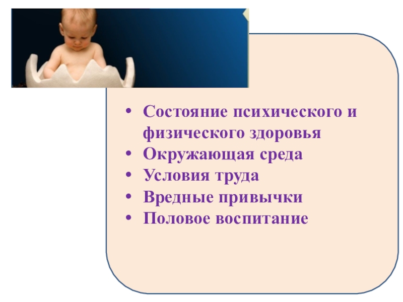Слайд 4От чего зависит состояние репродуктивного здоровья?