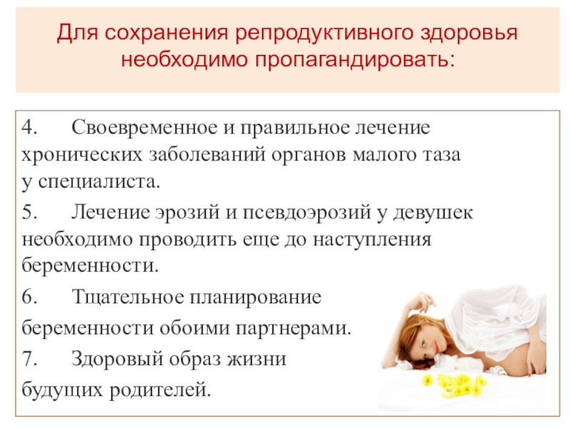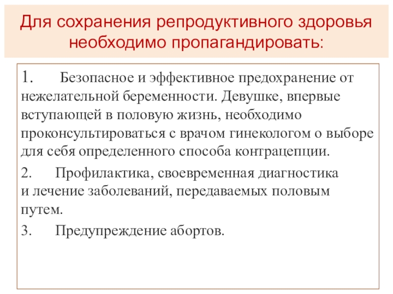 Для сохранения репродуктивного здоровья необходимо пропагандировать: