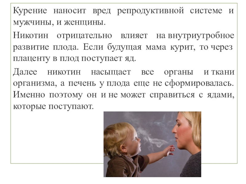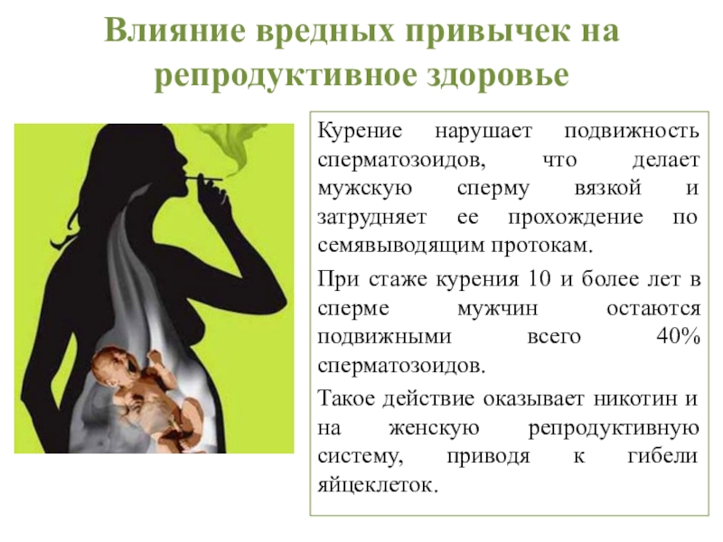 Слайд 15Курение наносит вред репродуктивной системе и мужчины, и женщины.