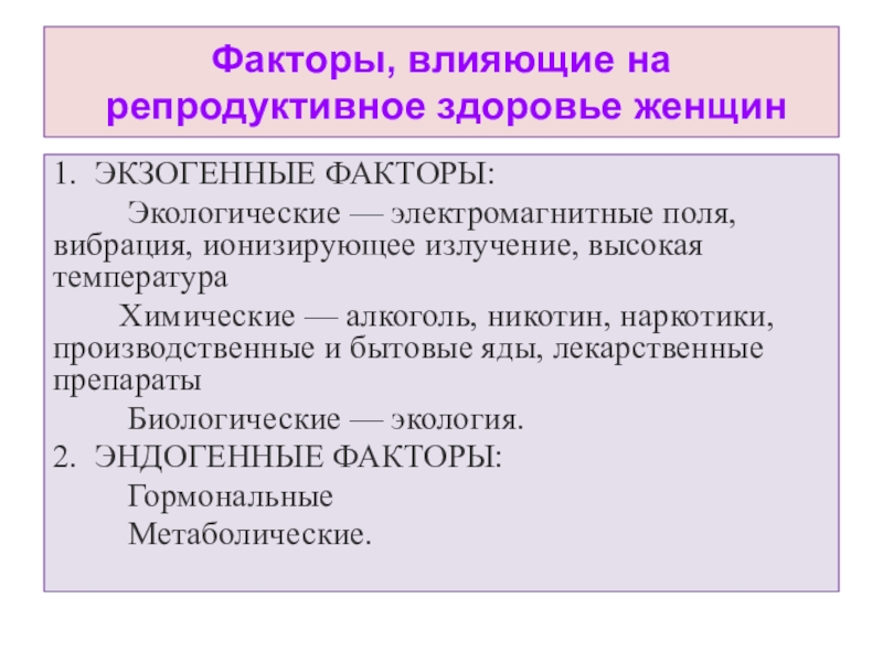 1. ЭКЗОГЕННЫЕ ФАКТОРЫ: